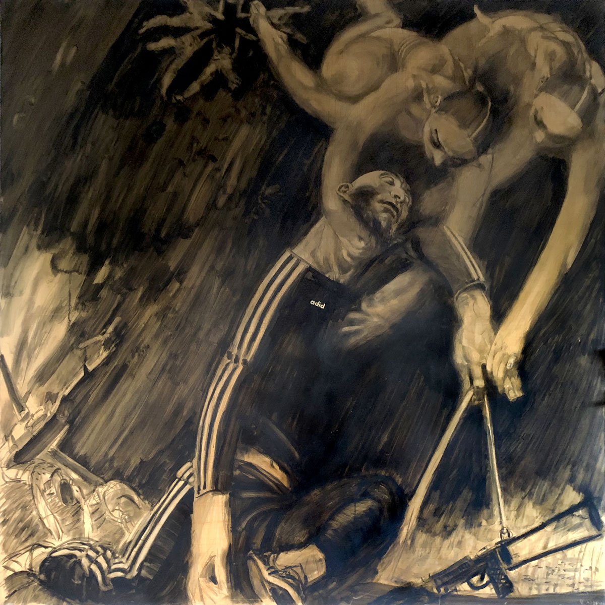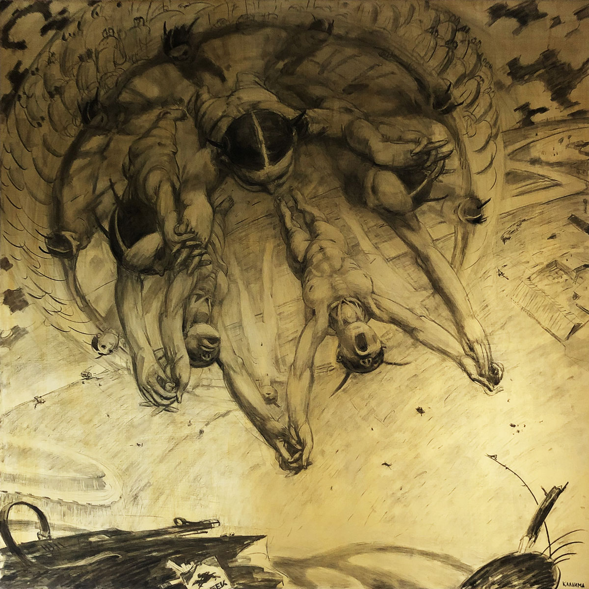 Каллима Алексей – Гурии спешат на помощь. 2004 Холст, акрил, уголь. 160 х 160 см б/р