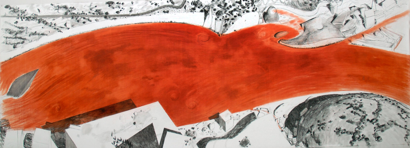 Каллима Алексей – Граница. 2007. Холст, сангина, уголь. 160×460 см