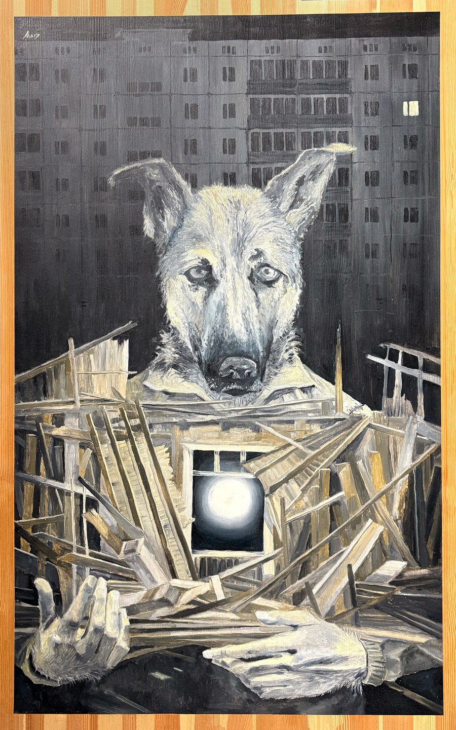Оленов Андрей – Из серии «Смена декораций». 2019. Дерево, масло. 100 x 60 см.